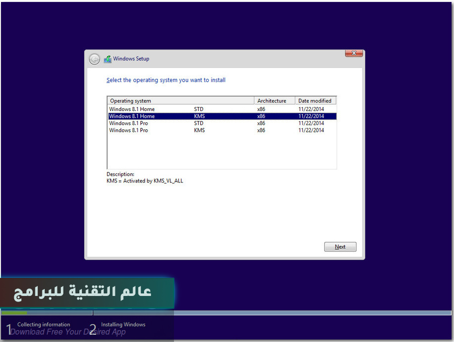 حصلت على إصدارات Windows 8.1 Home (STD و KMS) و Windows 8.1 Pro (STD و KMS).