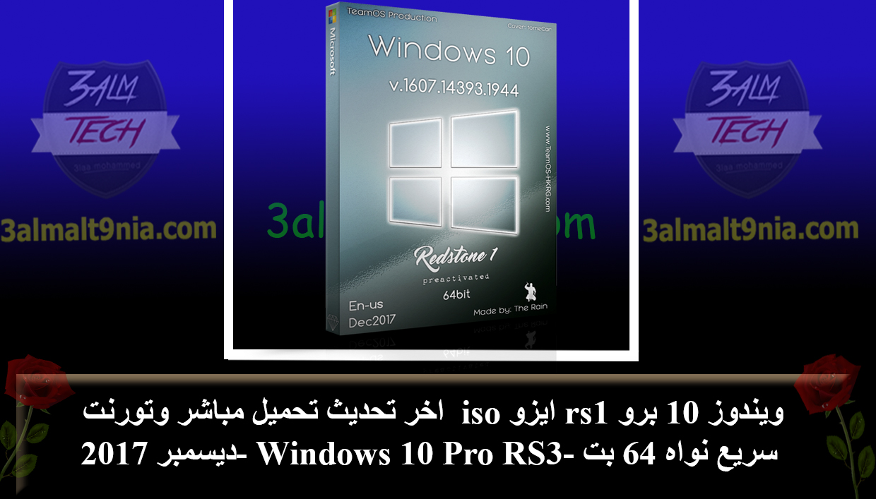 الاسم الكامل للويندوز:Windows 10 Pro RS1 v.1607.14393.1944 En-us x64 Dec2017 Pre-Activated