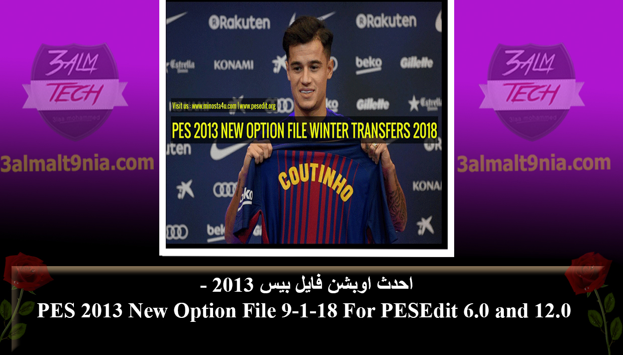 حجم الملف: 3 ميجا ⏬ مباشر- إمتداد الملف:RAR-احدث اوبشن فايل بيس 2013 – PES 2013 New Option File 9-1-18 For PESEdit 6.0 and 12.0