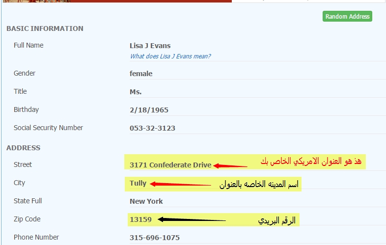 1: الحصول علي عنوان امريكي , كل ما عليك فعله هو الدخول لهذا الموقع
